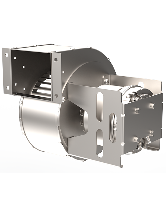- Positioning outside the hot air flow (motor outside the volute, separated from the impeller).